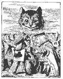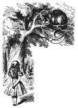 “Dinah vai sentir muito a minha falta esta noite, eu acho (Dinah era a gatinha). Espero que eles lembrem de dar-lhe leite na hora do chá. Dinah, minha querida! Eu queria que você estivesse aqui comigo agora. Não há ratos no ar, eu temo, mas você poderia pegar um morcego, e eles são tão parecidos com os ratos, você sabe. Mas será que os gatos comem morcegos?” E aqui Alice começou a ficar sonolenta e continuou falando para si mesma, de uma maneira sonhadora. “Gatos comem morcegos?”, e às vezes “Morcegos comem gatos?”