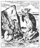 Alice olhou para o banco dos jurados e percebeu que, em sua pressa, tinha colocado o Lagarto de cabeça para baixo e a pobre coisinha estava lá, agitando melancolicamente a cauda, incapaz de se mover. Ela apanhou-o novamente e colocou o pobre de cabeça para cima. “Não que isso mude alguma coisa”, disse para si mesma, “eu penso que de uma maneira ou de outra ele tem a mesma utilidade.”