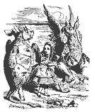 Sentada, com os olhos fechados, quase acreditou estar ela mesma no País das Maravilhas, mesmo sabendo que quando abrisse os olhos novamente tudo voltaria a ser a chata realidade de sempre...a grama se mexeria apenas com o vento e a lagoa estaria se movimentando apenas com os juncos...o tilintar da xícaras novamente seria o badalar dos sinos pendurados nos pescoços dos carneiros...os gritos agudos da Rainha seriam apenas os berros do pastor...o espirro do bebê, o guincho do grifo, e todas as outras coisas esquisitas iriam transformar-se (ela sabia) no confuso clamor da vida no campo...assim como o mugir do gado à distância iria tomar lugar dos pesados soluços da Falsa Tartaruga.