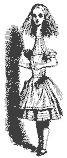 Alice abriu a porta e viu que dava para uma pequena passagem, não muito maior que um buraco de rato: ela ajoelhou-se e avistou o mais adorável jardim que jamais vira. Como ela gostaria de sair daquela sala escura e passear por entre aqueles canteiros de flores viçosas e aquelas fontes geladas...mas ela nem mesmo conseguiria fazer passar sua cabeça pela porta; “e mesmo que a minha cabeça passasse”, pensou a pobre Alice, “teria pouca utilidade sem meus ombros. Oh! como eu desejo poder encolher como um telescópio. Eu acho que poderia, se ao menos soubesse como começar.”