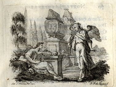 Alegoria à morte de D. José, Príncipe do Brasil. Gravura a buril de José Lúcio da Costa, a partir de obra de João Thomás da Fonseca