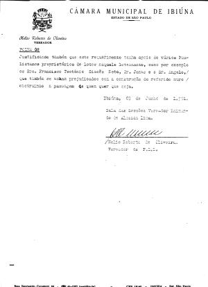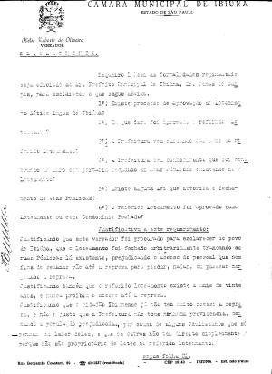 Requerimento da Câmara Municipal ao Prefeito de Ibiúna a pedido do Vereador Hélio Roberto de Oliveira em 3 de junho de 1991