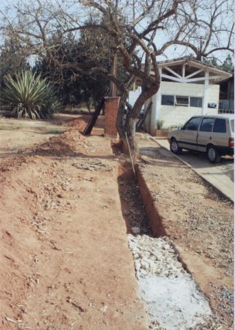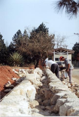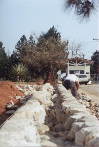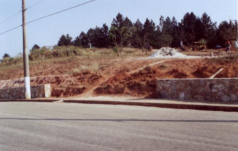 Área em que já está sendo construído um muro de pedra.