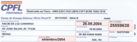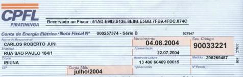 Só a título ilustrativo, abaixo, conta de luz de imóvel localizado à Rua São Paulo, Bairro da Ressaca, Ibiúna, antes da guarita edificada pela SASLI sobre o leito carroçável desta via pública: