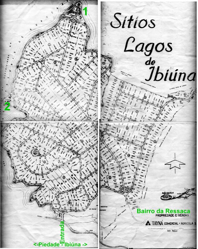 2. Nenhum lote (exceto reservas do Proprietário 1 e 2) se liga diretamente à represa. Entre os demais lotes e a Represa há a Avenida Marginal. Este traçado foi planejado pelo loteador para permitir a todos os proprietários acesso à represa (Reservatório de Sorocaba, no mapa) pelas áreas reservadas, que pretendia explorar comercialmente. Para a área 1, havia, inclusive, o projeto de uma marina.