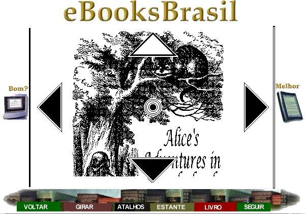 Clicando no botão Girar, aparecem quatro setas laterais e um alvo no meio delas. A seta branca indica a direção em que seu eRocket está. As outras indicam opções que você tem. No Rocket eBook real, isto permite 4 posições de leitura com o aparelho, duas horizontais e duas verticais. Se você é canhoto, por exemplo, vai adorar isso. Se você gosta de ler deitado, também.