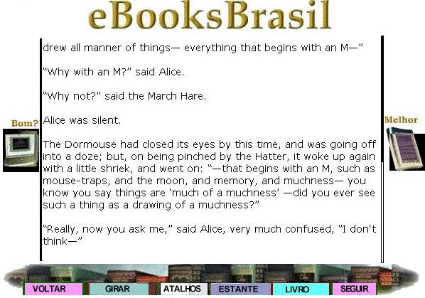 As áreas clicáveis nos botões de baixo (Voltar, Girar, Atalhos, Estante, Livro, Seguir) estão diretamente em cima dos títulos.