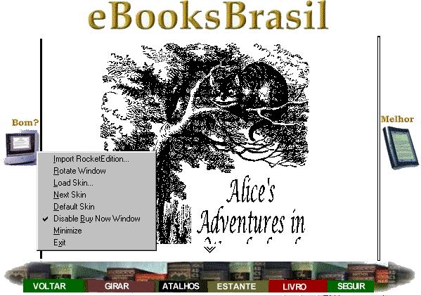 Clicando sobre o computador, aparece nosso velho conhecido, o Menu1, que na "pele padrão" apareceu quando clicamos sobre o nome Rocket eBook. Lembra?