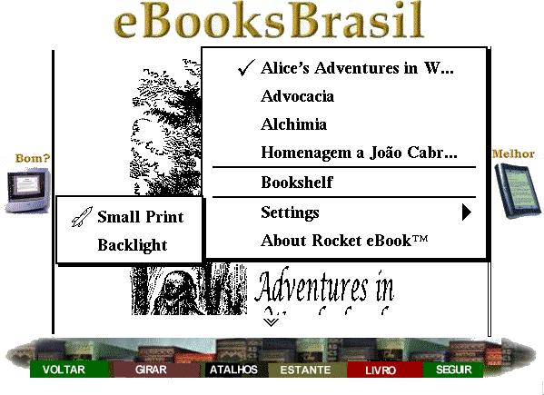 Se você estiver lendo com letras pequenas (Small Print) você tem aqui a opção de mudar para letras grandes (Large Print) e vice-versa. Repare que tem um foguetinho ao lado de "Small Print". Isso quer dizer que nosso botão Atalhos está sendo usado para a mudança de tamanho de letras. Voltaremos a isso quando examinarmos com mais detalhes o menu Atalhos.